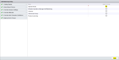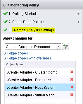 You can turn on and configure the settings for the Time element for the object types in your existing or new policy so that you can override the settings. This allows vROps Manager to calculate analytics for the group at specific times.Procedure:
