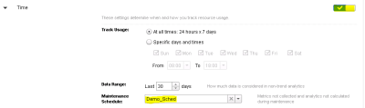 - Once enabled, change the time settings as per your requirement and select the maintenance schedule that you created earlier as highlighted in below image.