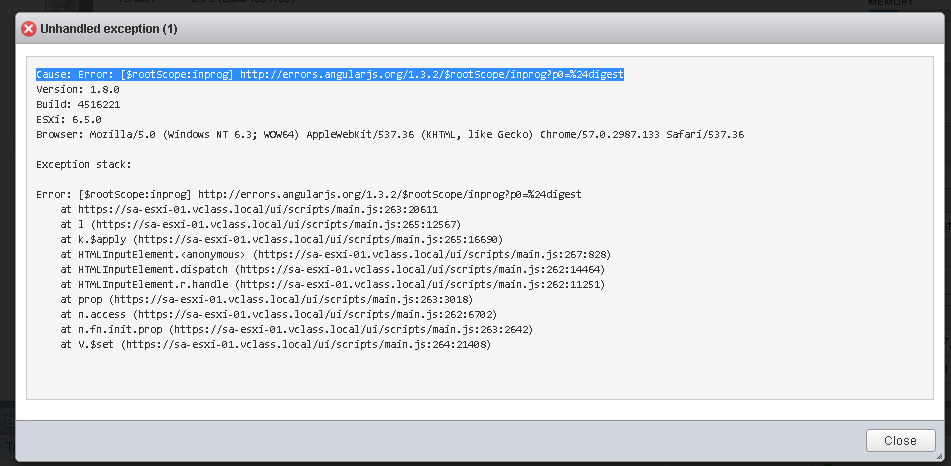 Unhandled Exception while logging into ESXi 6.5 Host client with Google chrome