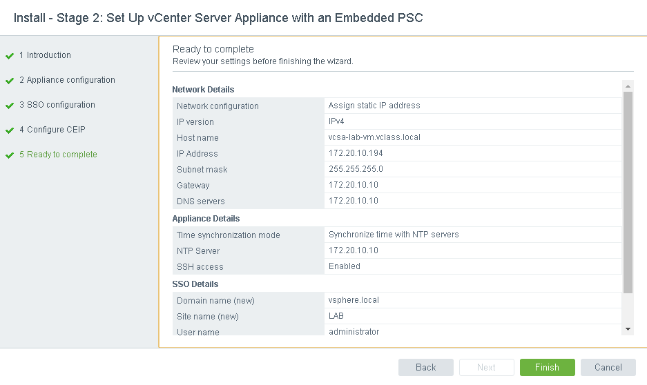 - Once completed, you can access web client, vSphere client to confirm the successful deployment.
