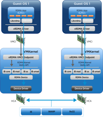 - Virtual machines that reside on different ESXi hosts require HCA to use RDMA.