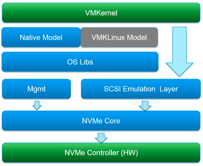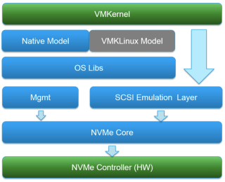 - SCSI Emulation Layer: The storage stack of ESXi is SCSI based, responsible for translating SCSI to NVMe command