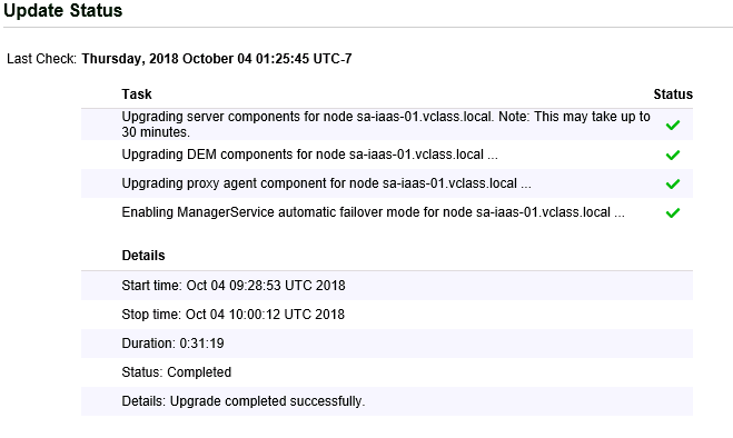 - After reboot, verify that vRA appliance is updated to latest version.