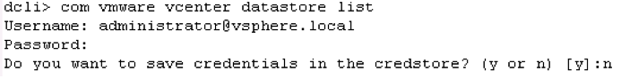 After logging into DCLI, On first use DCLI prompts you to choose for storing credentials in credstore.