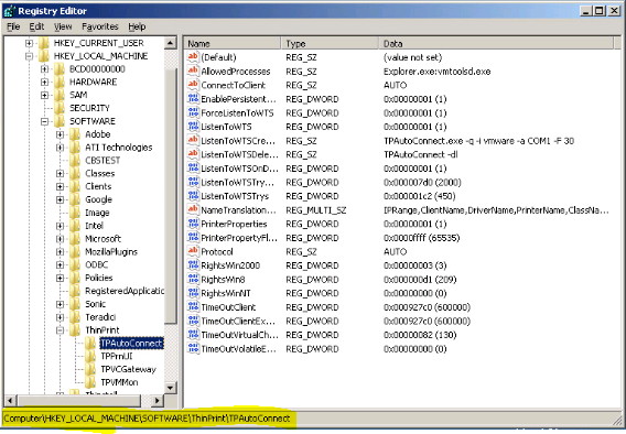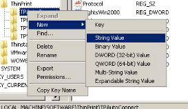 - Navigate to the HKLM\SOFTWARE\ThinPrint\TPAutoConnect key.
