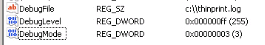 - Create a new DWORD value and name it DebugMode. Modify DebugMode and set its Value data to 00000003.