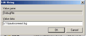 - Modify DebugFile and set its Value data to C:\\tpautoconnect.log