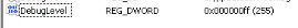 - Modify DebugLevel and set its Value data to 000000ff.