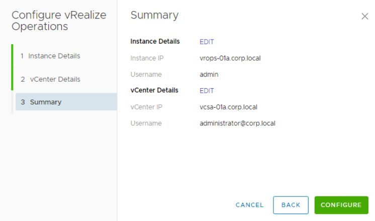 - Click on Configure existing instance assuming that you already have vROPS installed.