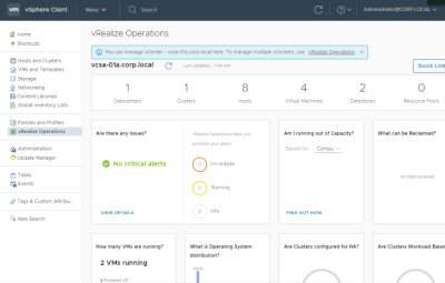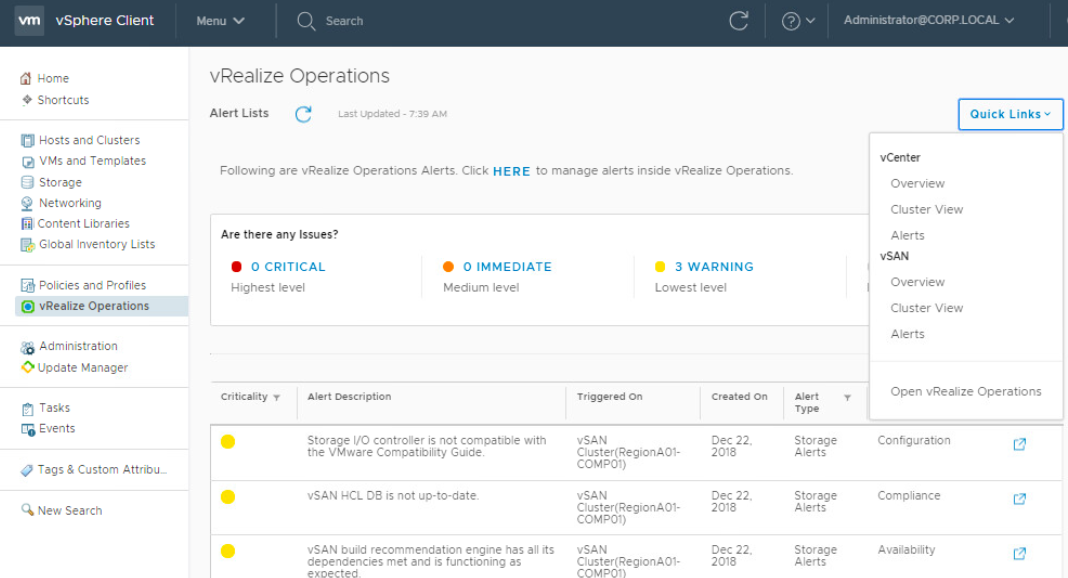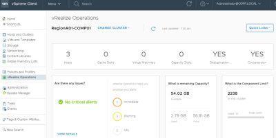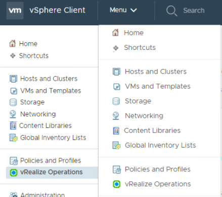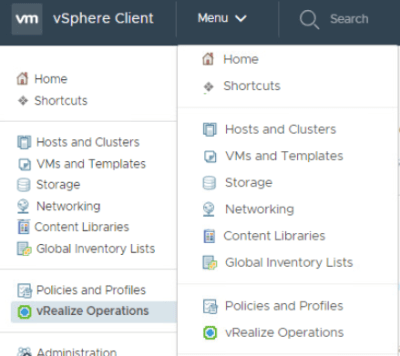 - Login to vSphere client and click on vRealize Operations from Menu drop down.