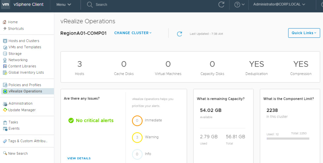 - On vROPS screen, default message is displayed as vROPS is not present.