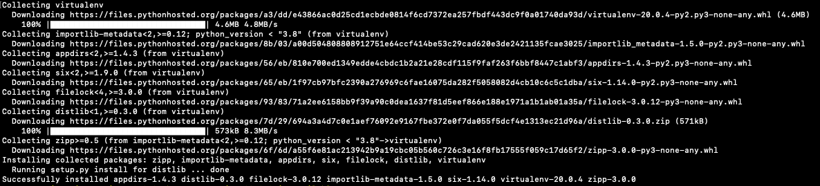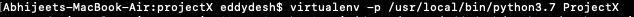 First of all, we will install virtualenv tool. I am using macOS, hence I will be using terminal for doing so. For Debian based linux distribution, use below command to do the installation.