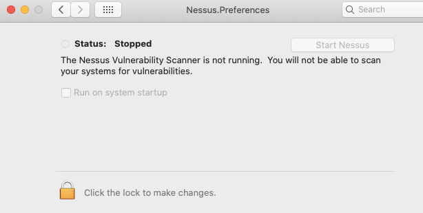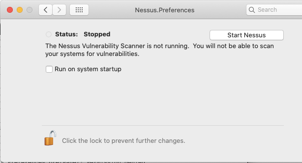 - On the Nessus.Preferences screen, click on the lock to make changes.