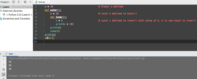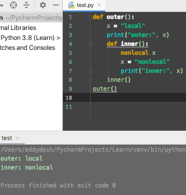 - We can see that the nested function printer() was able to access the non-local variable msg of the enclosing printmsg() function.