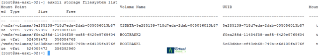 As per old versions we used to have partition layout as below with minimum required space of 5.2 GB standard. There was also possibility of installing ESXi only with 1 GB minimum space considering scratch and diagnostic partition is configured on network