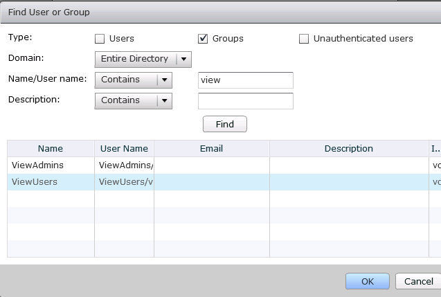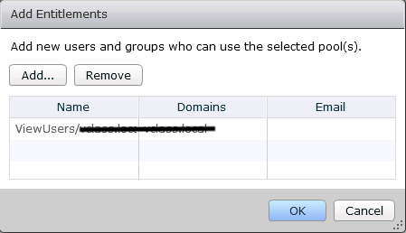 - Search for user or group to be added, and select the entry and click OK to add entitlement as in image below