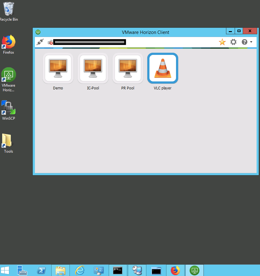 - If you notice in above screenshot, I am just logged in to my Horizon client. I have not launched any desktop pool or Application. As you can see in my taskbar, it shows only, regular apps along with Horizon client and no sign of VLC player.