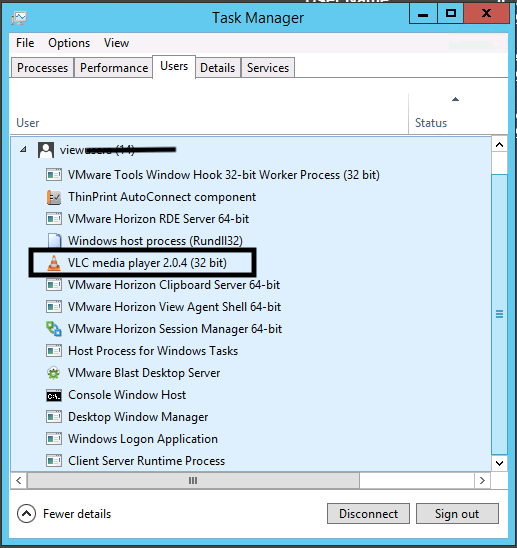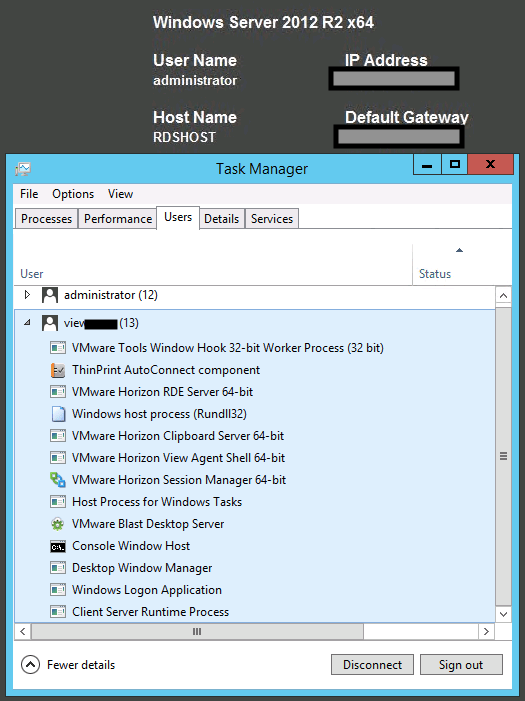 - Let’s quickly check on RDS host now on Users tab in task manager.