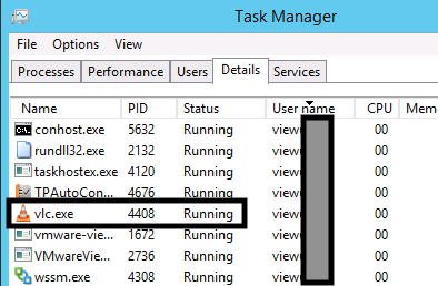 - Let us check the Details tab now and there it goes again. We can see all processes associated with our test user except VLC Player.