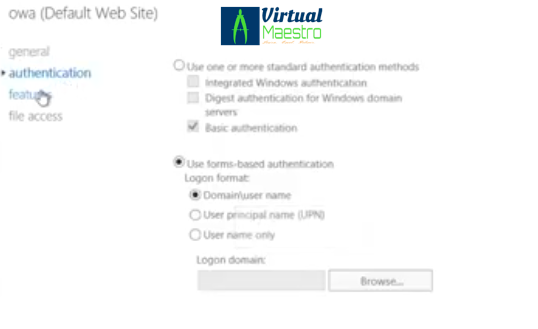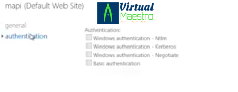 The following table shows different types of authentication methods that are included in the virtual directories in client access services. The types of authentication may differ depending on the service type provided by virtual directories as in images below.
