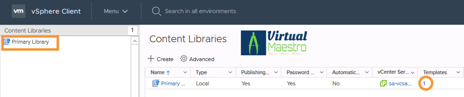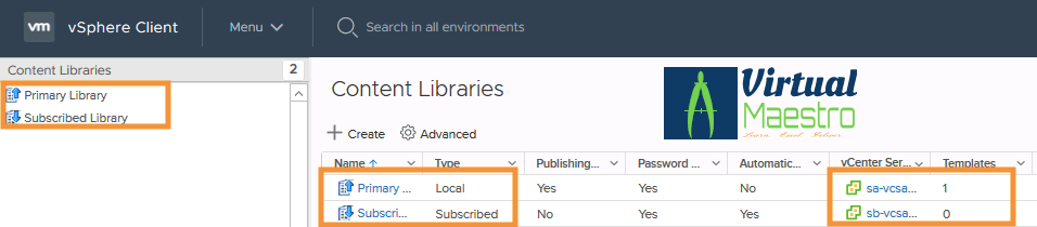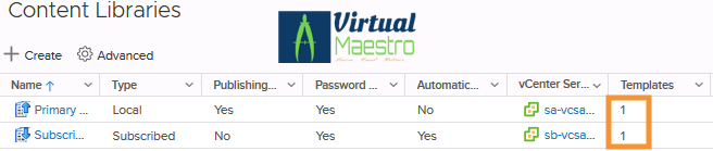 Review your libraries in content library pane. We should have two content libraries across two sites and vCenter Servers.