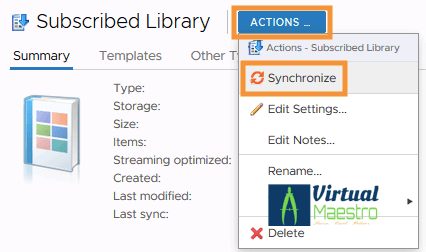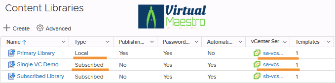 And here we are with the result as shown below. I have my subscribed library on same vCenter where primary library is also created but they do differ in where they are stored.