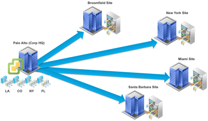 In this deployment model, each location has its own vCenter Server and local resources such as ESXi host, Datastore respectively. vCenter servers are configured in linked mode (Enhanced since 6.0). The advantage of this deployment model is that even if primary vCenter Server is unavailable, remote location is unaffected.