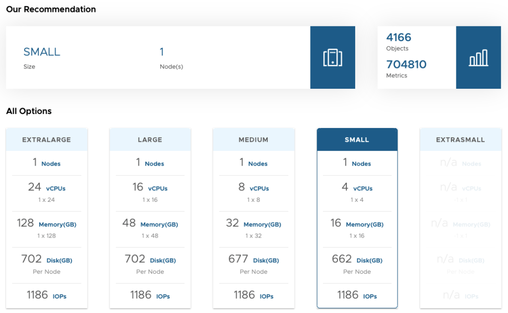 Below are the details of default configurations and maximums in vROPS 8.0. While deploying vROPS, we get default configuration options as Extra Small, Small, Medium, Large, and Extra Large configurations during installation.