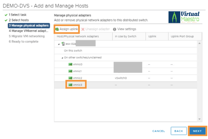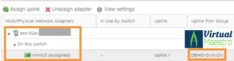 - Assign the network adapter by selecting it and click on assign Uplink.