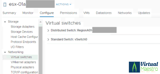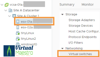 - Navigate to an ESXi host, Click Configure Tab, and click virtual switches under networking.