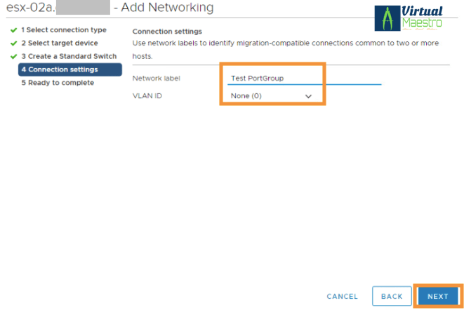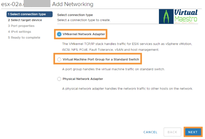 - Select Portgroup creation or VMKernel port creation option and click next. I have used portgroup for demo purpose.