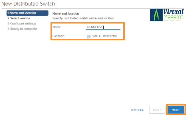 - First of all DVS is not created on ESXi host. It is created on vCenter by right clicking your datacenter or from Actions menu of Datacenter as shown below.