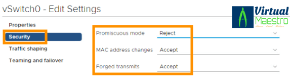Ok that clears some air about these concepts. Now that we are through with it, let’s look at the policies MAC address change and Forged transmit.