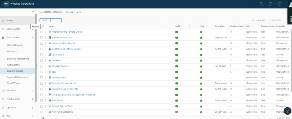 In vRealize Operations (vROps), there are multiple ways to organize resources for efficient monitoring and management. Three common methods for grouping resources are Tags, Application Groups aka business application in (8.x), and Custom Groups. While these grouping methods may have overlapping features, each has its own unique characteristics and can provide different benefits. In this article, we will explore the differences and use cases for Tags, Application Groups, and Custom Groups, helping you choose the most appropriate grouping method for your organization’s needs.